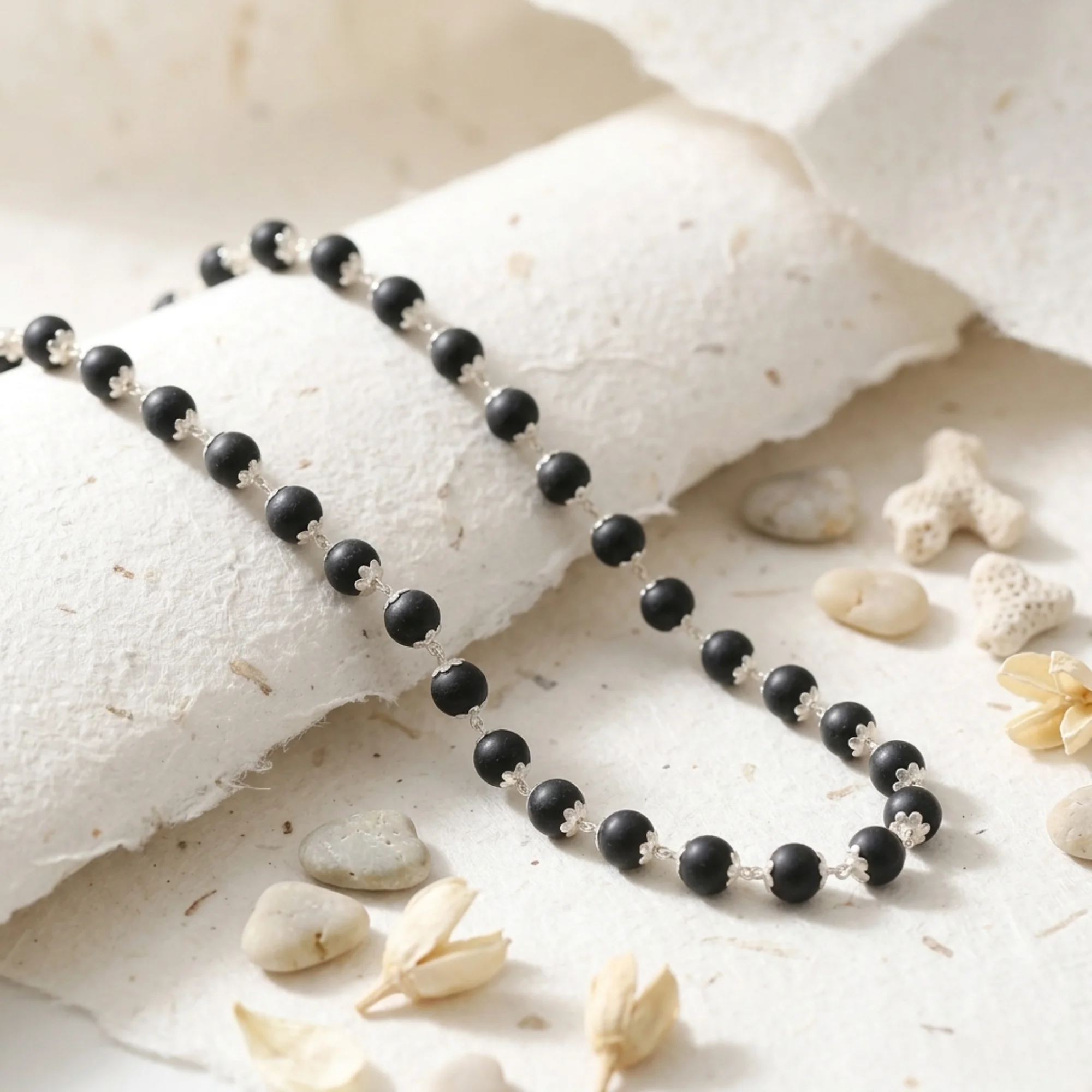 Karungali Malai with Silver Cap Plated | Ebony Wood Mala for Protection & Spiritual Energy